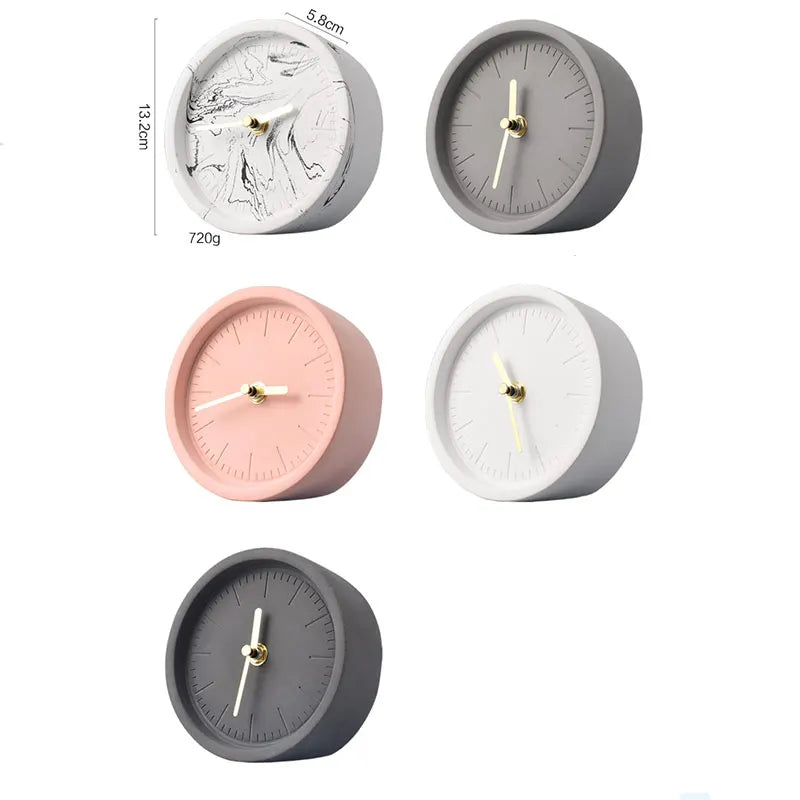 Round Silent Concrete Desk Clock | Ornaments Cement Desk Clock