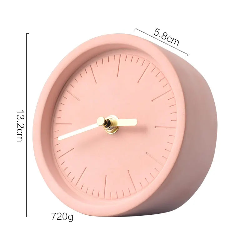 Discover the pinnacle of contemporary sophistication with our Round Silent Concrete Desk Clock. Crafted with precision from premium concrete, this clock epitomizes modern elegance with its sleek, rounded design. Engineered for silent operation, it ensures a peaceful environment conducive to productivity and focus. Its minimalist aesthetic seamlessly integrates into any space, whether it's a minimalist workspace or a cozy home office. The tactile feel of concrete adds a unique touch of texture, while the silent movement guarantees uninterrupted tranquility. Whether adorning a desk, shelf, or bedside table, this clock is a stylish statement piece that marries form and function flawlessly, promising both visual appeal and reliable timekeeping.